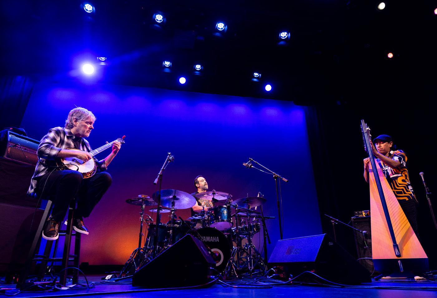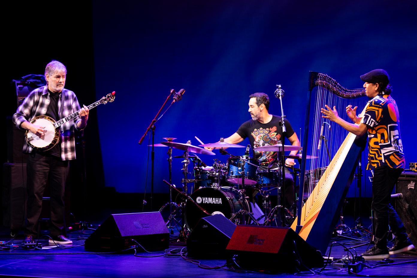 Banjo. Drums. Harp. Huh? To be sure, the new all-star trio of Béla Fleck, harpist Edmar Castañeda and drummer Antonio Sánchez features instrumentation that might safely be called uncommon. Unless, of course, you’re already familiar with 19-time Grammy-winner Fleck — the genreblurring virtuoso who has done more to expand the possibilities of the banjo than any other player in the instrument’s history. From his bluegrass beginnings through his otherworldly Flecktones, his duo with Chick Corea and his reimagining of Rhapsody in Blue, Fleck’s work never fails to surprise. What doesn’t surprise is the impeccable caliber of his collaborators — and this new trio includes two of the most gifted musicians of their generation. The harpist, Castañeda, hails from Bogotá, Colombia, and has led his own bands in addition to sharing projects with such masters as Hiromi, Paquito D’Rivera and Grégoire Maret. 5-time Grammy-winner Sánchez grew up in Mexico City and built a reputation as one of the great jazz drummers through his work with guitarist Pat Metheny. He’s also been a visionary bandleader, helming progressive groups like Bad Hombre, and collaborated with Chick Corea, Gary Burton, Charlie Haden, Michael Brecker and other giants. His Golden Globe-nominated drum-set score for Alejandro González Iñárritu’s 2014 film Birdman earned him renown far outside the jazz world. Playing original repertoire, much of it collaboratively written, this trio embarks nightly on fearless explorations that audiences will find irresistible — rich with strong melodies, gorgeous harmony and grooves that twist and turn while feeling fantastic.