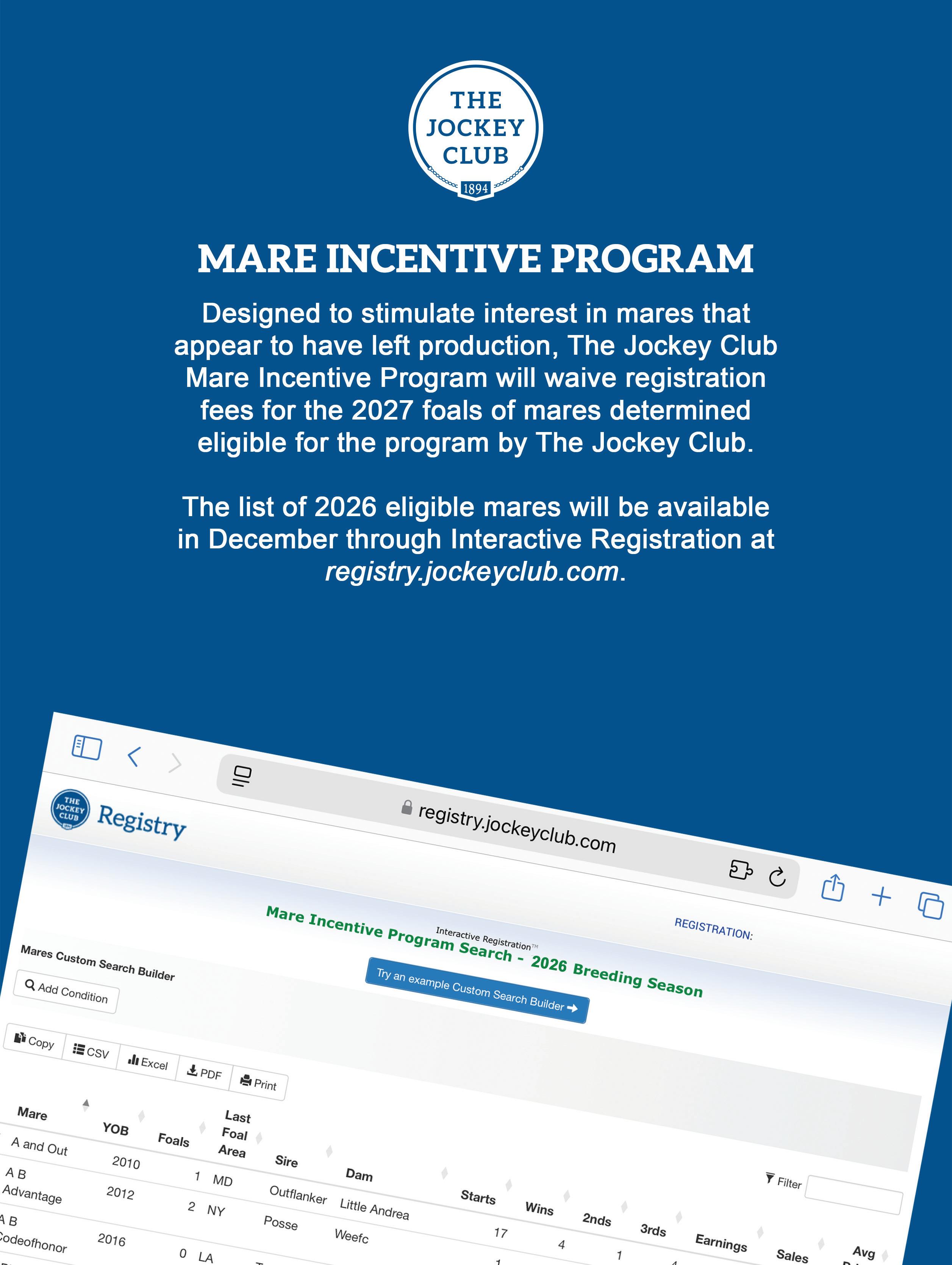 Annual Re-certification: $300 due 8/1 of the breeding year, paid to ATBHA with a copy of the Report of Mares Bred (RMB) submitted to The Jockey Club