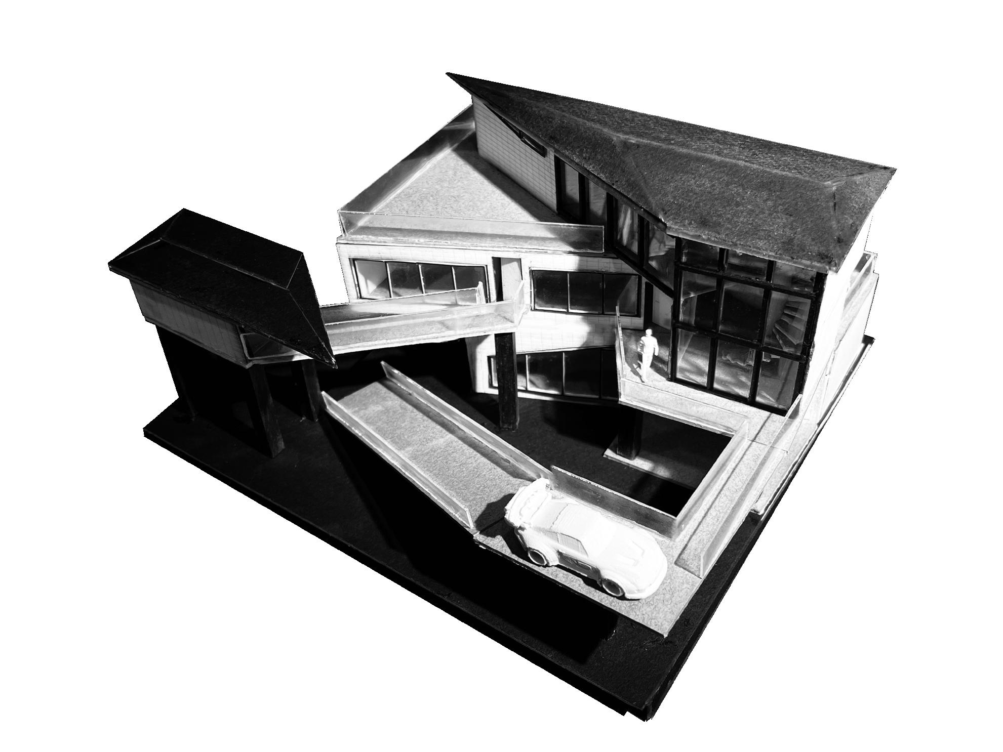 Vessel of Sculpture is intended to serve as both the gallery and studio of Ben Young, a contemporary sculptor from New Zealand. His works explore the vastness of the ocean and its connection to the seabed through tectonic assemblies of glass, concrete and steel, inspired by his experiences as a surfer and shipbuilder. With the motifs of this artwork in mind, the design process began by slicing the lot diagonally to accomodate a water feature to display large sculpture installations. A diagonal approach was created through the water feature inviting the community to engage with the artwork, effectively breaking the ice between the con -