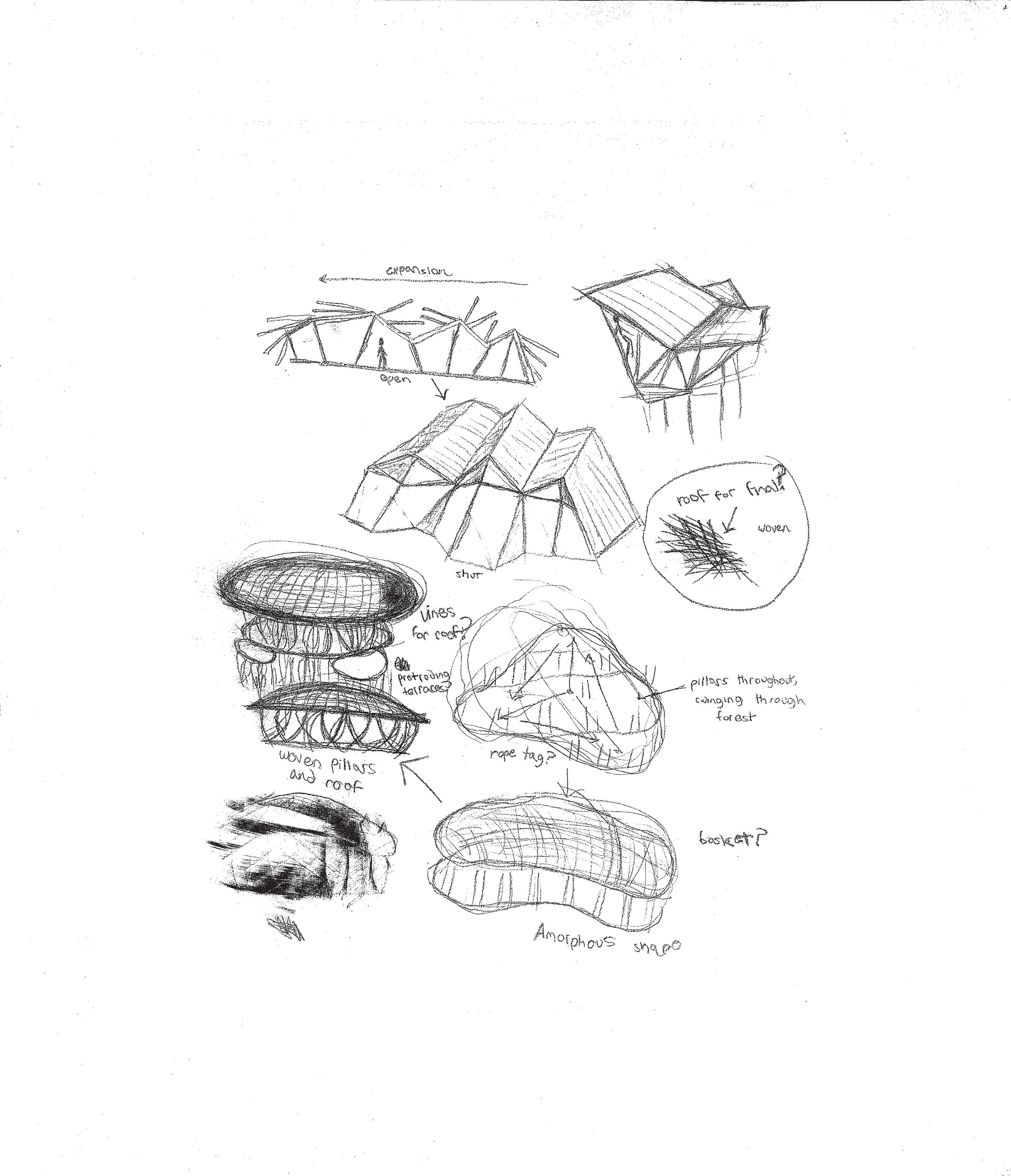 A rainwater retention pond on campus was selected as the site for a small structure, intended to foster relaxation and open-ended play. The design process begins with an experiential, mixed media site analysis and a series of sketches/sketch models. The proposed scheme responds to spatial fields created by the pond, rising above the cavity through an accumulation of angular surfaces, while twisting to conform to the direction of the pond itself and surrounding pedestrian ciculation.