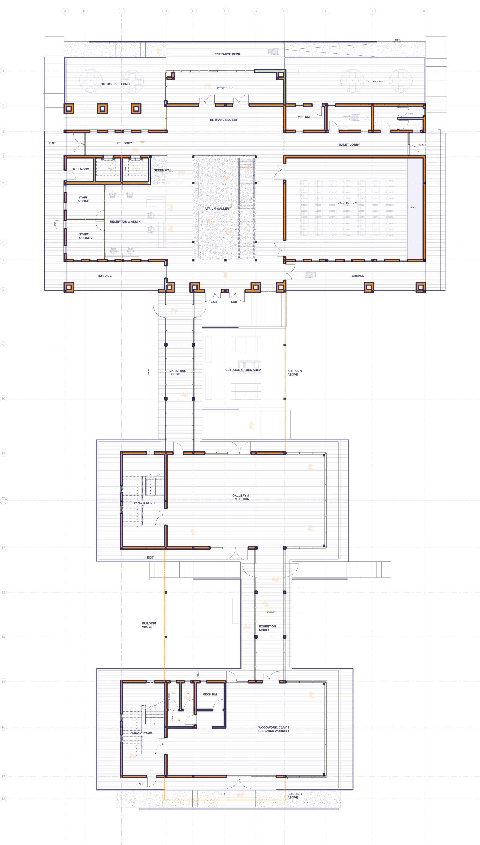 21045759 - OLUWATOBILOBA BABALOLA. O | Arch 691 - Comprehensive Building Design Studio | KITCHENER COMMUNITY CENTRE | DR. ARAJI + MS. WEI FALL ‘23 | 3D GROUND FLOOR PLAN