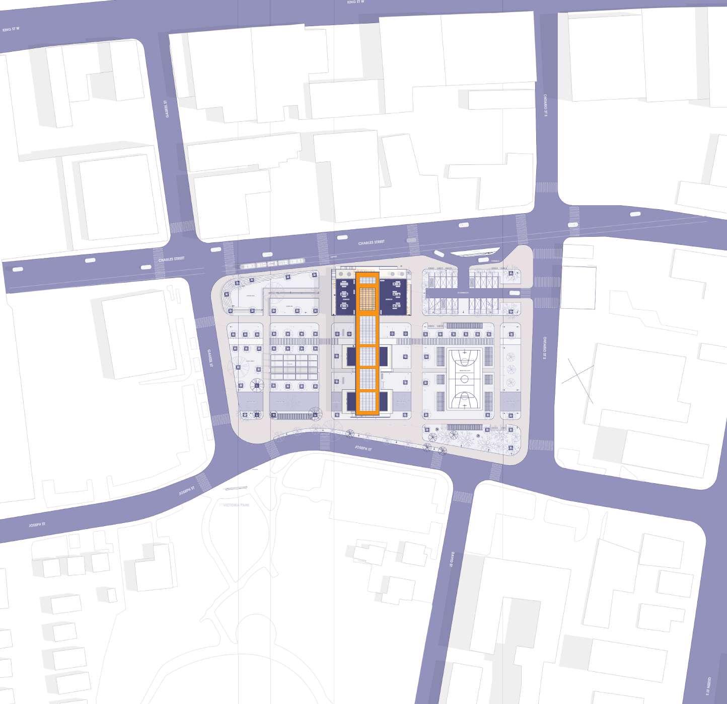 21045759 - OLUWATOBILOBA BABALOLA. O | Arch 691 - Comprehensive Building Design Studio | KITCHENER COMMUNITY CENTRE | DR. ARAJI + MS. WEI FALL ‘23 | SITE LAYOUT Scale: 1:300