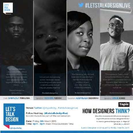 started let’s talk design after so many failed attempts, out of my curiosity and inquisitiveness for design ideas. LTD’s aim is to have designers meet to talk, rub minds and share ideas about design challenges, so we can grow, be better equipped and inspired to identify challeges and provide solutions in immediate community in Africa. To also foster a culture among designers that constantly questions the WHY of everything to make better. Design is likened to a mountain where every designer has a unique view based on interest and our thought processes. Hence the LTD’s virtual & physical community welcomes, architects, interior designer, product designer, brand designer, artist, sculptors, graphics designers, fashion designers, photographers and cinematographers e.t.c in Africa.