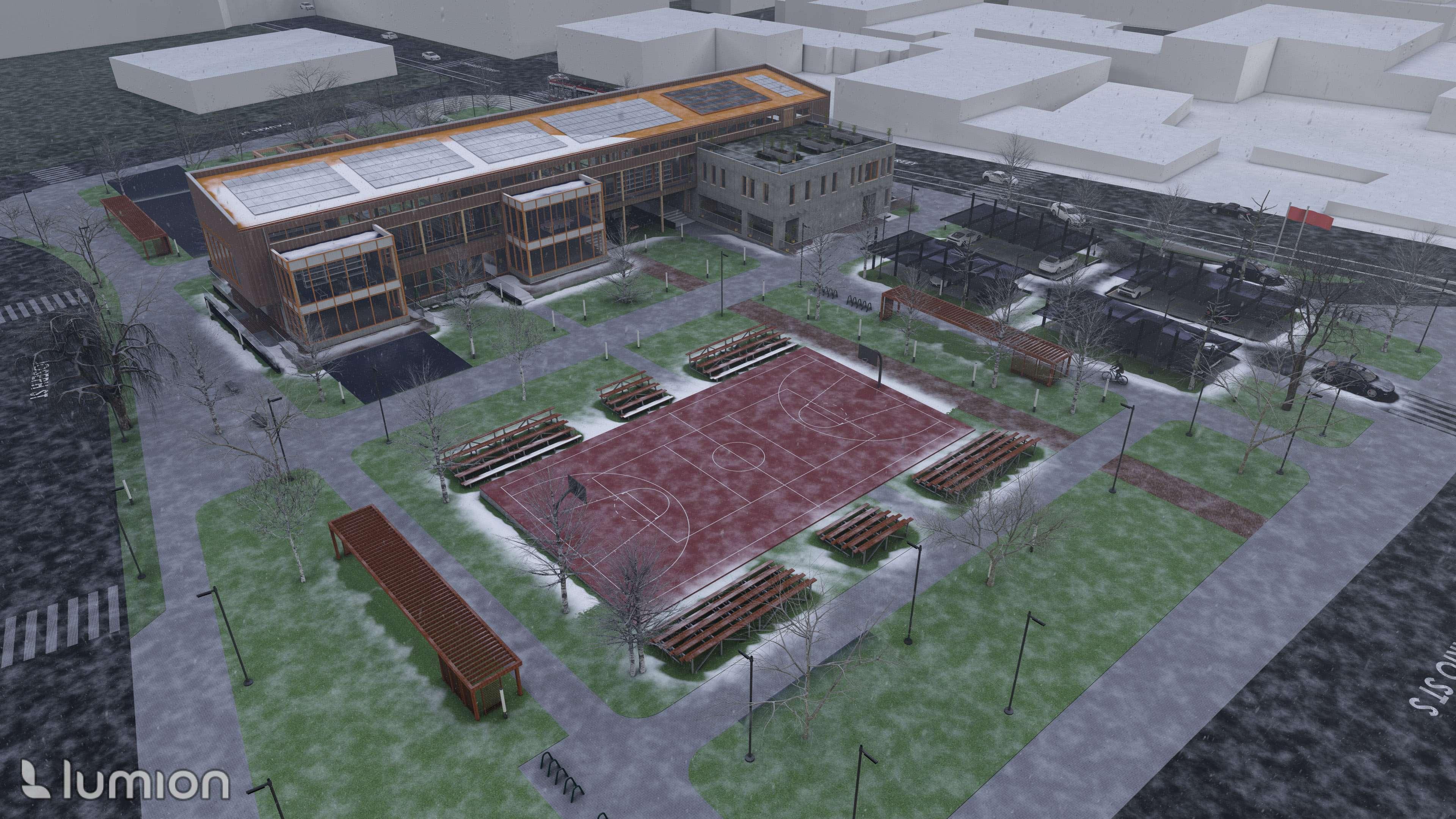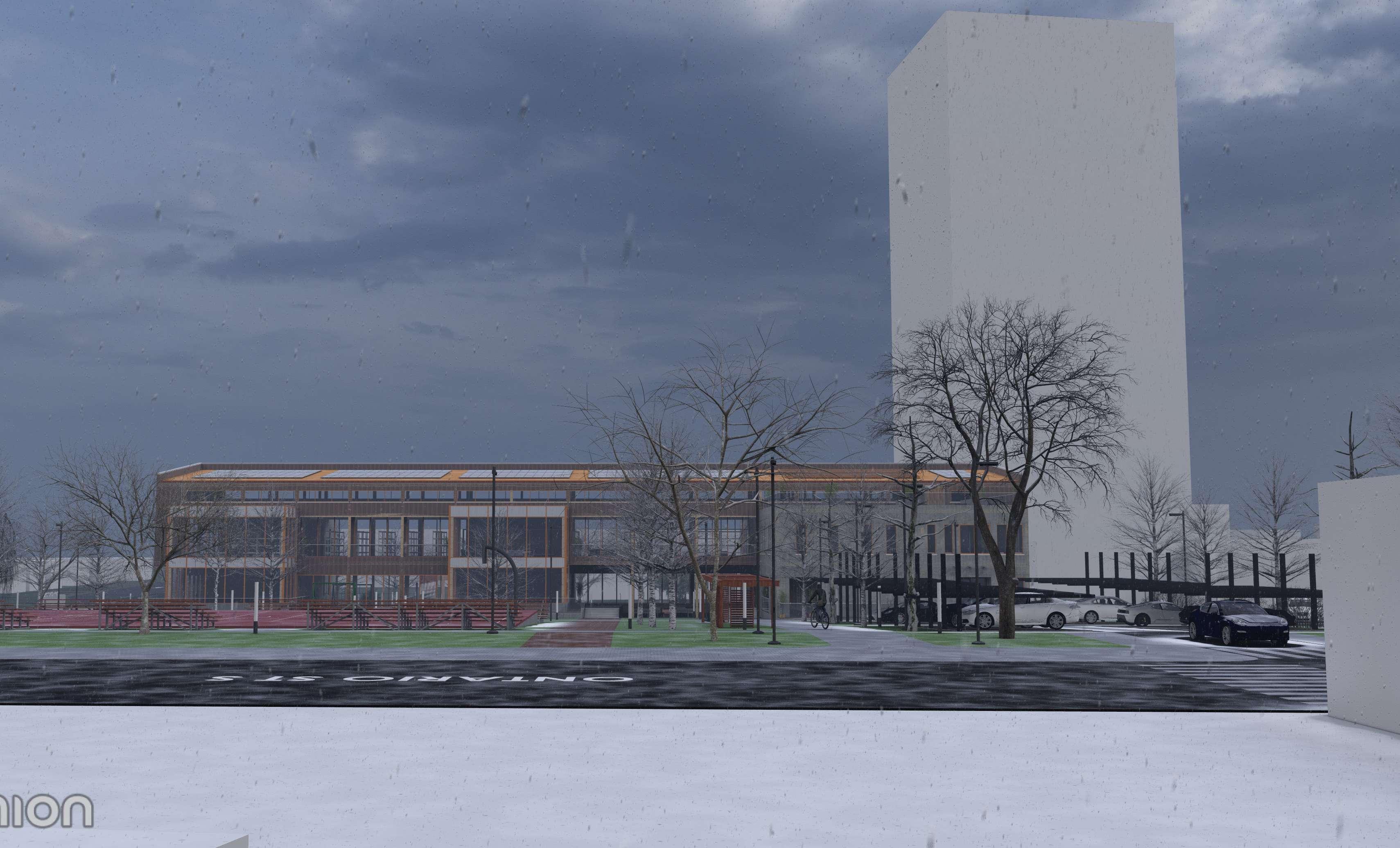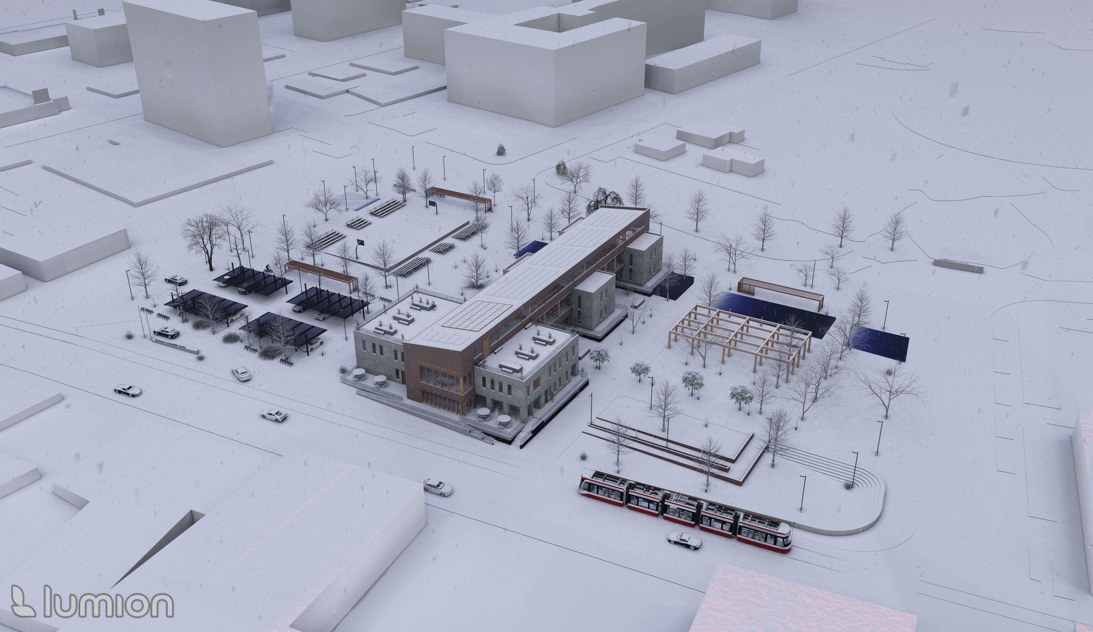 21045759 - OLUWATOBILOBA BABALOLA. O | Arch 691 - Comprehensive Building Design Studio | KITCHENER COMMUNITY CENTRE | DR. ARAJI + MS. WEI FALL ‘23 | AERIAL VIEW (WINTER)