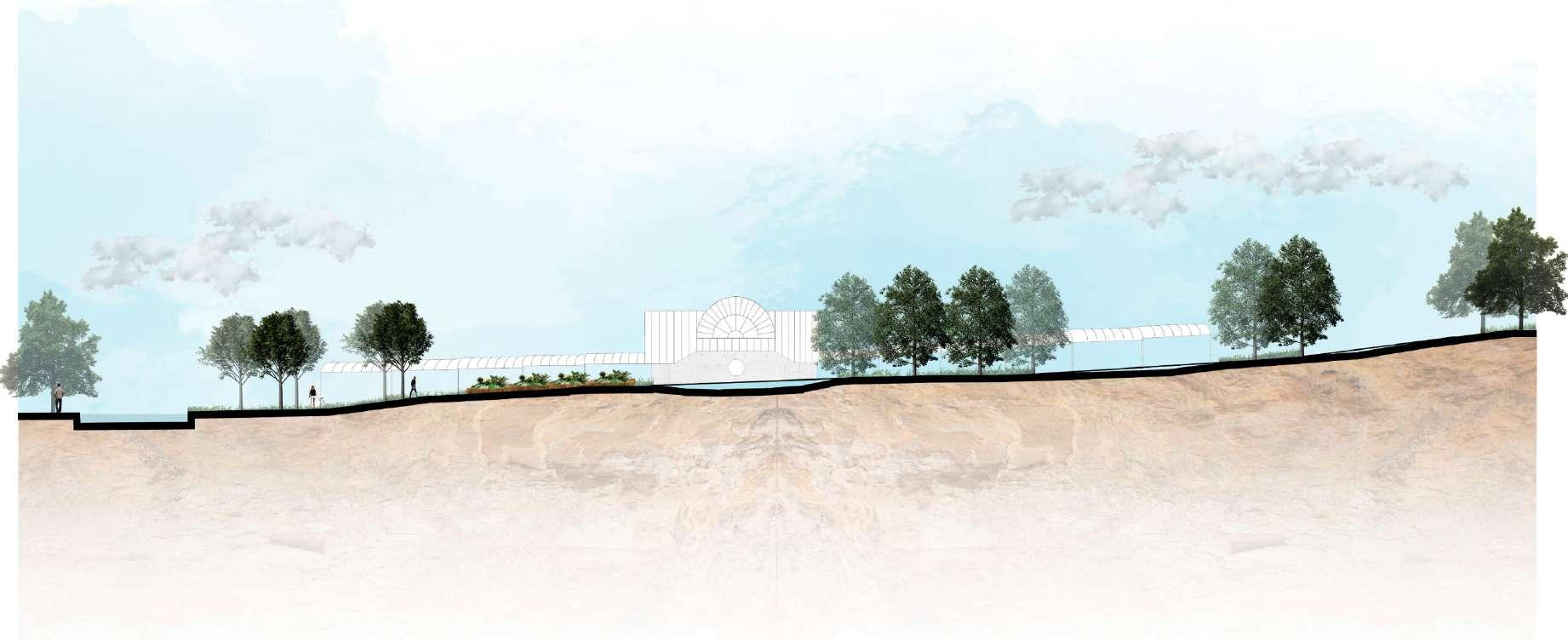 21045759 - OLUWATOBILOBA BABALOLA. O | Arch 691 - Comprehensive Building Design Studio | KITCHENER COMMUNITY CENTRE | DR. ARAJI + MS. WEI FALL ‘23 | GAUKEL STREET (FOR PEDESTRIANS) WITH OUTDOOR SEATING DRAINAGE LINE (SURFACE WATER COLLECTION) FOUNTAIN LAWN, GARDEN, LAWN, GARDEN, Ticket office, washrooms, waiting room, restaurant, covered platforms COVERED PLATFORMS PARKING PARKING, LAWN, ONTARIO STREET S (VEHICULAR PEDESTRIAN) 150m 33,100mm 32,700mm 32,900mm UNDERGROUND DRAINAGE & STORM WATER COLLECTION POINTS STRATEGIES MANHOLE (DRAINAGE COVER) WATER FLOW DIRECTION SITE SECTION PATH
