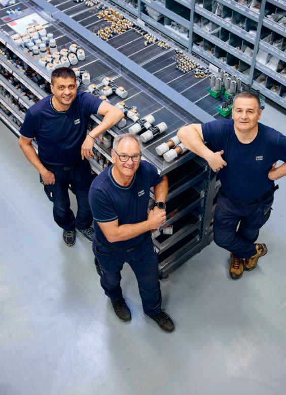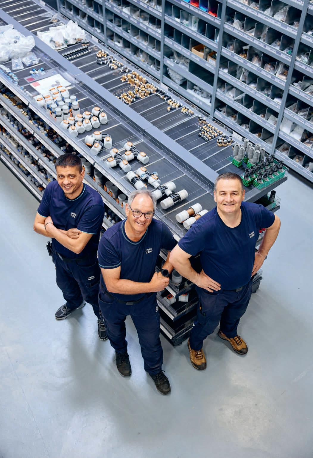 Auch die zahlreichen Sanitär- und Heizungsinstallateure unter den Kunden proftieren von der breiten Lagerhaltung. Doch genauso wichtig ist für sie der fachliche Austausch. Einerseits können sie sich von den Marché-Angestellten über neue Konfgurationen oder Varianten von Produkten informieren lassen. Andererseits ist der Marché auch ein inofzieller Branchentref, denn die meisten Walliser Gebäudetechniker kennen sich aus der gemeinsamen Zeit in der Berufsschule oder von der Arbeit auf einer Baustelle.