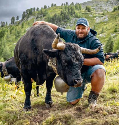 ander los. «Sobald sich eine dritte Kuh den zwei Kämpfenden nähern würde, geht einer der drei den ganzen Sommer hier im Einsatz stehenden Hirten auf die Kühe zu, um zu schauen, dass eine mögliche Dritte den Kampf nicht beeinflusst», erklärt Ralf Bregy. Sie seien es auch, welche die Kampfszenen nicht nur genau beobachten, sondern sie auch fein säuberlich notieren. «Am Ende der Alpsaison wird dann aufgrund der Daten und Beobachtungen die Rangordnung erstellt und eventuell eine Königin gekürt», präzisiert er mit strahlenden Augen. «Königin wird aber nur eine Kuh, die bis zum Einstallen am letzten Tag keinen Kampf verliert.» Für ihn selbst bedeute das Ankommen bei seinen Schützlingen auf der Alp jeweils eine grosse Erholung. «Und das geht so natürlich nur, weil ich mit meinem Arbeitgeber, der Gruber Haustechnik AG, eine gute Absprache habe, um ein so umfassendes Hobby mit Kühen, Heuen und Stallarbeiten zu pflegen.» Den Umgang mit den Tieren habe er von klein auf gelernt: «Das habe ich von meinem Grossvater und von meinem Vater mitbekommen.» Hier auf der Alp im Chalet das Wochenende zu verbringen, sei für ihn das Grösste, sagt er. «Und von meinem Arbeitsort in Gampel habe ich nur gerade eine halbe Stunde, bis ich hier bin.» Zweimal im Jahr begleitet er einige seiner Tiere zum sogenannten Stechfest, wo sich Kühe aus der nahen Umgebung messen. «Jedes Jahr am Muttertag findet zudem in Aproz der kantonale Anlass statt, der jeweils bis zu 15’000 Besucherinnen und Besucher anlockt.» Ob beim einen oder anderen Anlass auch «Champion» dabei sein wird –oder gar zur Königin gekürt wird? «Das ist durchaus möglich, wir werden sehen», sagt Ralf Bregy schmunzelnd, während er sie sanft und gleichzeitig auch aufmunternd auf den Kopf tätschelt. (el)