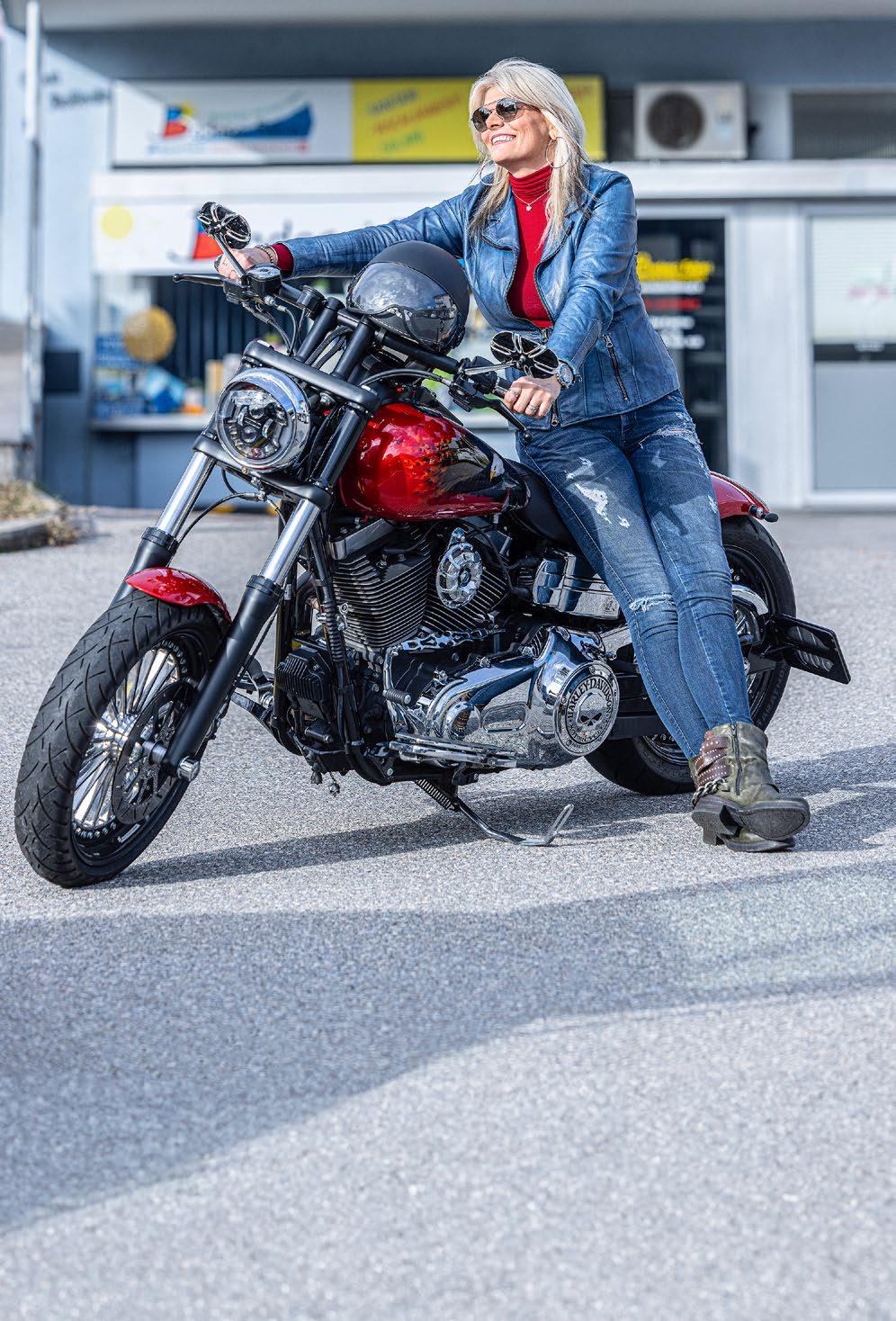 Carmen Badasci s’est fait immortaliser avec deux aigles sur sa Harley Dyna Fat Bob 1580 de 2010. « J’ai acheté la Harley en 2021 et je l’ai fait transformer selon mes souhaits en 2022. Cela a concerné notamment la peinture que j’avais choisie ainsi que le design réalisé par Marty Design de Cheyres (FR) avec les deux rapaces. » La machine a été modifiée dans le Bikers Store de son partenaire Lorenzo Mainetti à Lodrino avec l’aide de Kiko, ami de ce dernier et propriétaire de Beta Carrozzeria à Bellinzone. « Maintenant, elle est exactement comme j’aime. » Carmen