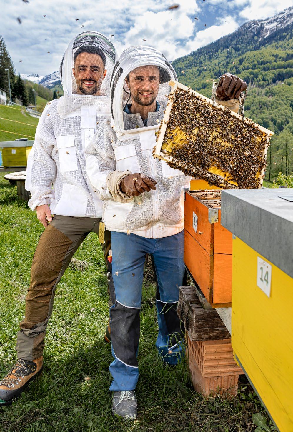 rilevato la proprietà dei genitori nel 2011 e iniziato l’attività di allevatori con due mucche, a cui si è aggiunta l’attività di apicoltori avviata nel 2018. Oggi possiedono 20 mucche e 55 popolazioni di api. «In estate, ci occupiamo complessivamente di 70’000 api ad arnia.», racconta Andrea Tamagni. Quest’ultimo affianca il fratello in ditta e gestisce anche una propria attività di consulenza nel settore dell’impiantistica. Per poter raccogliere il miele alla fine di luglio, si deve porre un melare con dieci telaini sopra ogni arnia verso fine maggio, quando le api si sono risvegliate e moltiplicate dopo la pausa invernale. «È nei melari che si accumula il miele che raccogliamo, mentre il miele che si trova nell’arnia non va toccato.», spiega Andrea Tamagni. Ogni colonia può produrre fino a 30–40 chilogrammi di miele all’anno. I due fratelli, che allevano le api attenendosi alle direttive per produttori BIO, possono commercializzare il miele con questo marchio. «Tuttavia, lo vendiamo soprattutto localmente o ad amici e conoscenti. E lo forniamo anche ad alcuni alberghi.», aggiunge Matteo Tamagni. Non è però una questione di soldi, dice. E suo fratello conferma: «Per noi allevare le api è un meraviglioso diversivo al nostro lavoro quotidiano. Ci infonde molta pace e tranquillità, e siamo all’aperto tutto il tempo.» Anche le api sentono però gli effetti del cambiamento climatico: «Lo vediamo concretamente. Le variazioni di temperatura le rendono irrequiete e nervose, ciò che può in ultima analisi minacciare l’esistenza delle singole popolazioni di api.». È quindi ancora più importante prendersi cura di loro e aiutarle il più possibile adottando misure di protezione biologiche contro gli acari, «ciò che torna a vantaggio di tutti». (el)