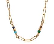 NEW! Constance Stainless Steel, Lapis Lazuli, Turquoise & Tigers Eye. 14K Gold Finish.