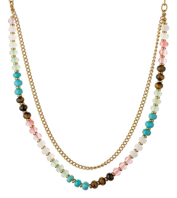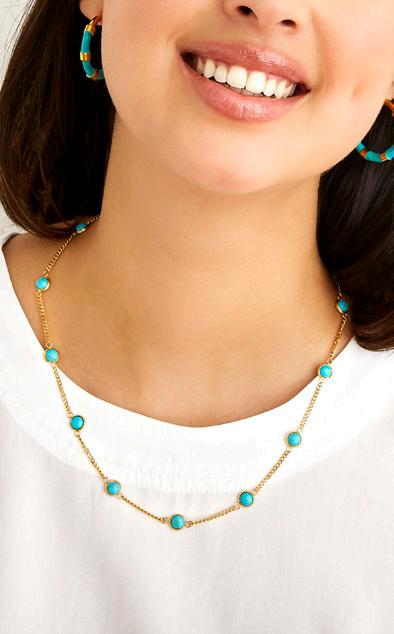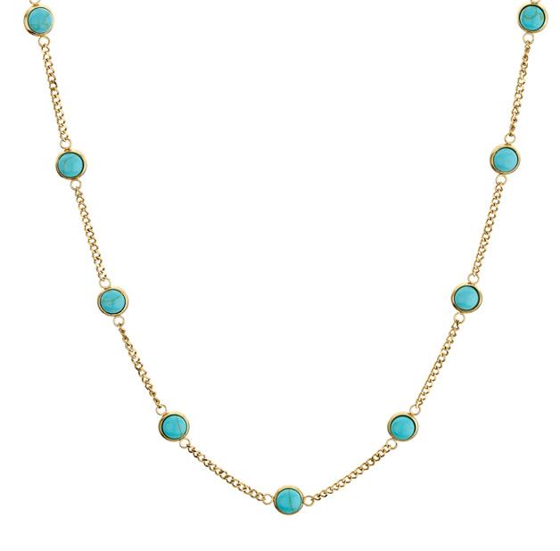 Liliane Stainless Steel & Turquoise. 14K Gold Finish. Necklace 17" +2" | RN60825 CA$125 / US$99 / £99
