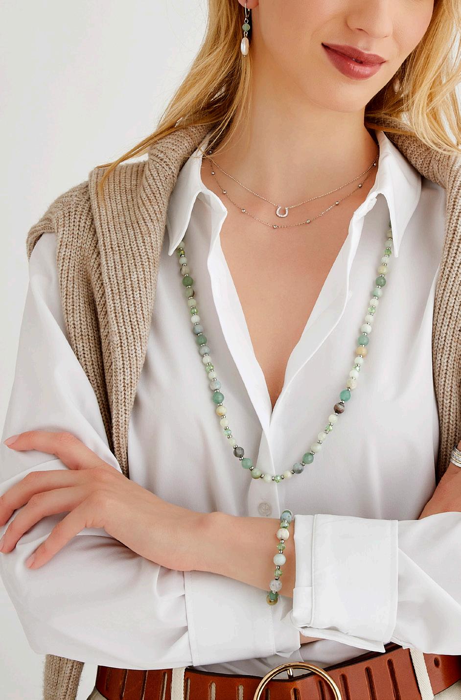 Jasmine Stainless Steel & Amazonite. 14K Gold Finish.