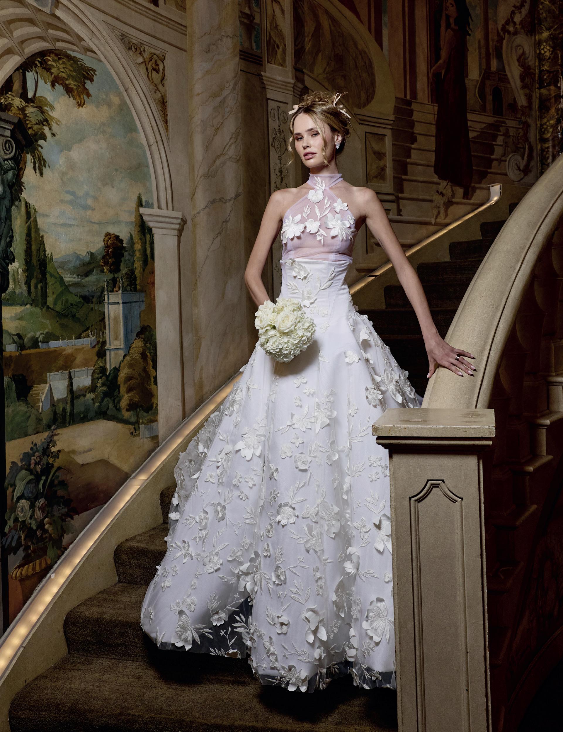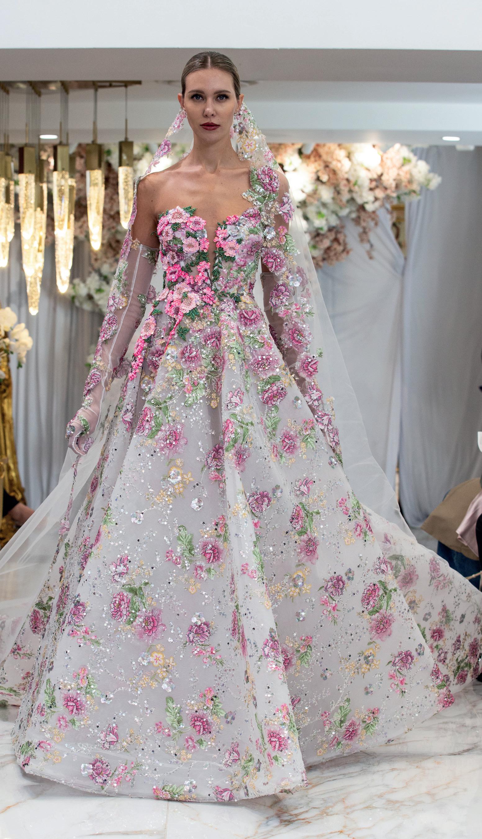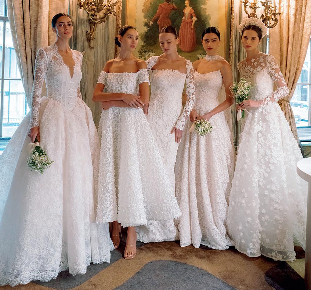 On the bridal fashion runways, feminine florals, delicate lace and princess-bride elegance continue dominating aisle style, while the 1920s and 1950s look suddenly modern again