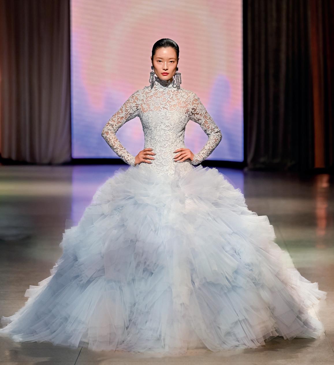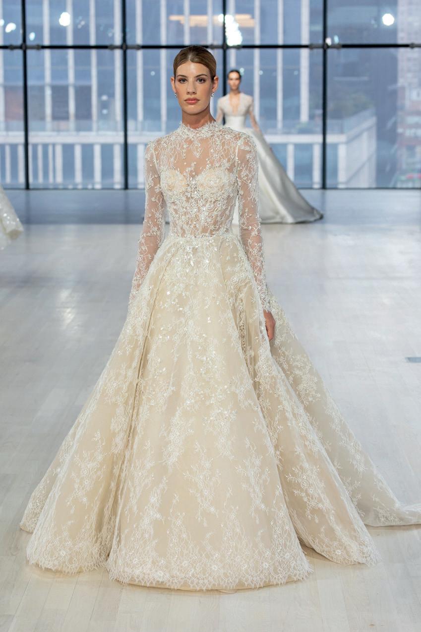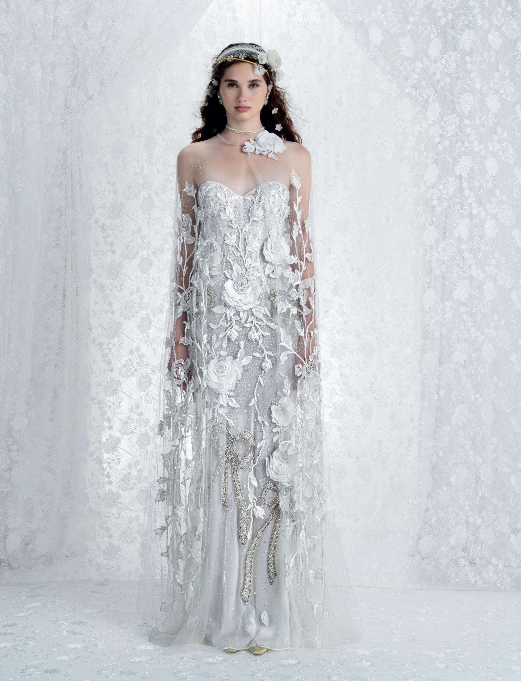 On the bridal fashion runways, feminine florals, delicate lace and princess-bride elegance continue dominating aisle style, while the 1920s and 1950s look suddenly modern again