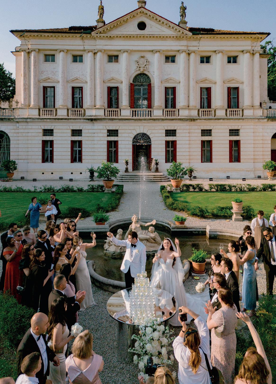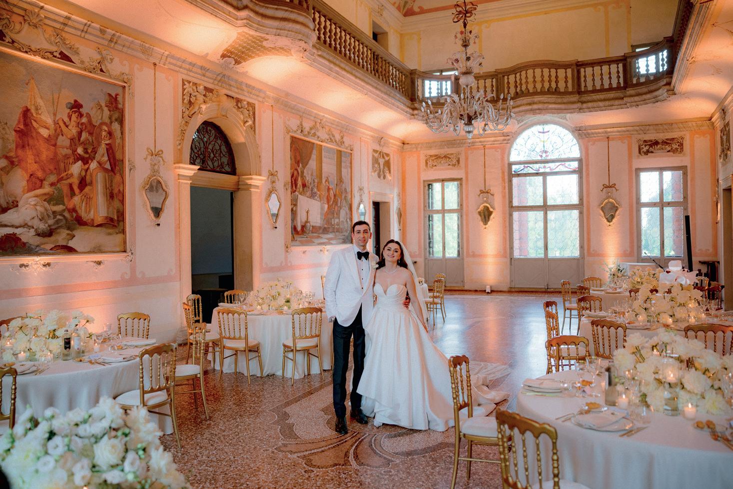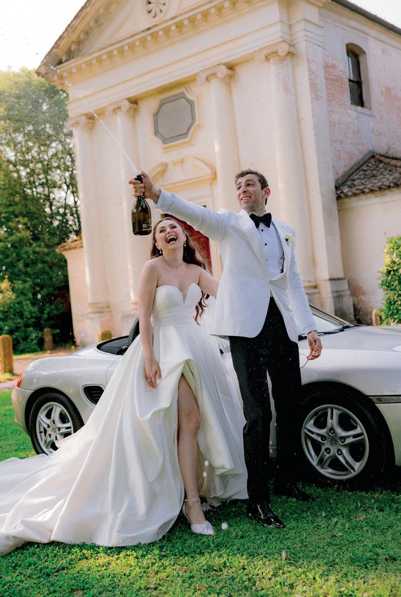 The reception was held at the 16th-century villa Ca' Marcello, where guests were greeted with live lounge music, Italian canapés and cocktails. Lucy and Mark made a grand entrance in a vintage Porsche Boxster before sharing an intimate first dance to “Endless Love” in the villa’s frescoed ballroom. The night was filled with surprises, including a playful twist on the traditional Armenian bridal dance, a cake-cutting ceremony under the stars and a dazzling fireworks display that lit up the Venetian sky. Guests embraced the Venetian magic by donning masks, indulging in desserts like tiramisu and gelato and dancing the night away.
