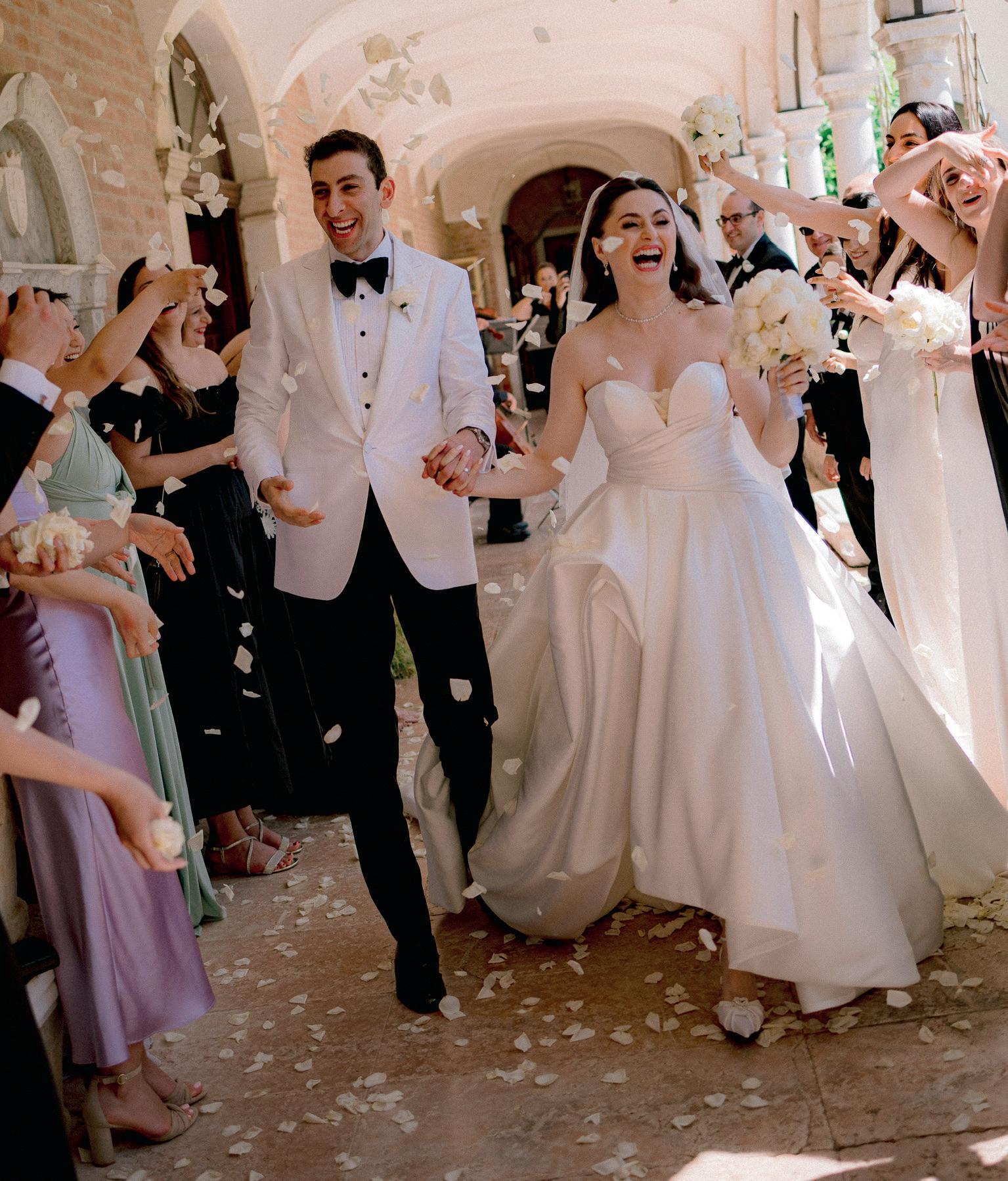 Groom’s tuxedos: Brunello Cucinelli (welcome); King and Bay (ceremony); Garrison Bespoke (reception)