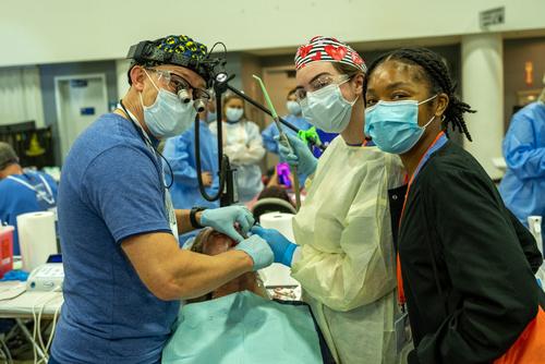 Pre-registration appointments take place beginning at 2PM on Thursday, May 30 during the Veterans First Initiative program. We see veterans and medically fragile patients who will complete all necessary paperwork and will visit with our patient education, medical triage, radiology, dental triage and routing departments. A treatment plan will be discussed with the patient and the patient will be asked to return the next morning at 6:30AM as a pre-screened patient. Pre-screened patients enter a separate entrance, have their vitals taken by medical triage volunteers and are escorted to the appropriate dental department to begin treatment.