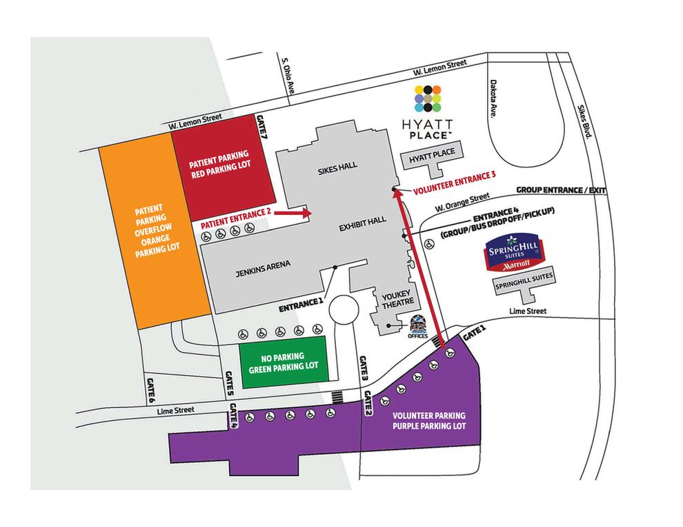 Parking attendant volunteers will arrive at 5:30AM to help transport patients via golf cart to the entrance and assist with other needs in the parking lot.