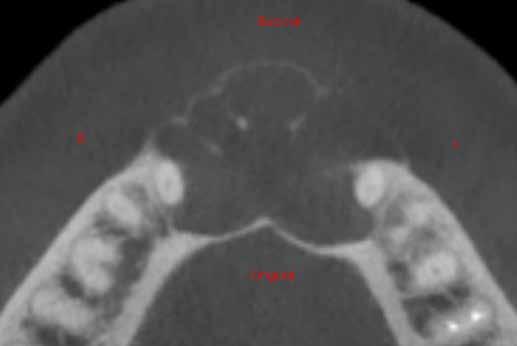 Incorrect. Traumatic bone cyst (TBC), or simple bone cyst, is a pseudocyst lacking an epithelial lining and most commonly occurs in children and adolescents, with a strong predilection for the posterior mandible, unlike our case. It is usually discovered incidentally and classically as a unilocular radiolucency with scalloping between the roots of vital teeth, typically without cortical expansion, which was present in this case; hence, this diagnosis does not fit TBC. Typically, the bone cavity is empty or contains old hemorrhage and some granulation or fibrous connective tissue. The bone cavity typically contains serosanguineous fluid. The patient’s age, anterior mandibular location, multiloculated radiographic appearance and cortical expansion render TBC untenable as a diagnosis.