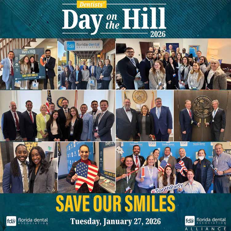 Today’s FDA (ISSN 1048-5317/USPS 004-666) is published bimonthly by the Florida Dental Association (FDA), 545 John Knox Road, Ste. 200, Tallahassee, FL 32303. FDA membership dues include a complimentary subscription to Today’s FDA. Nonmember subscriptions are $150 per year; foreign, $188. Periodical postage paid at Tallahassee, FL and additional entry offices. Copyright 2026 Florida Dental Association. All rights reserved. Today’s FDA is a refereed publication. POSTMASTER: Please send form 3579 for returns and changes of address to Today’s FDA, 545 John Knox Road, Ste. 200, Tallahassee, FL 32303.