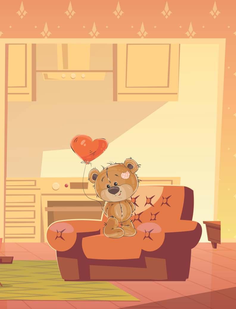 Así que ahora se pasaba la mayor parte del tiempo sentado en su puesto de honor, en el rincón del sofá, mirando pensativo al frente. Pero pasarse todo el día y toda la noche sentado en un puesto de honor, no es, desde luego, nada divertido, y por eso a veces Lavable se ponía a bailar un ratito para sí mismo, aunque sólo cuando nadie lo veía; de lo contrario, le hubiera dado vergüenza, pues era un poco torpe… como todos los ositos de peluche.