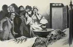 A efectos de librar del trance hipnótico al paciente, acudí a los pases habituales. De entrada resultaron infructuosos. La primera indicación de un retorno a la vida lo proporcionó el descenso parcial del iris. Como detalle notable se observó que este descenso de la pupila iba acompañado de un abundante flujo de icor amarillento, procedente de debajo de los párpados, que despedía un olor penetrante y fétido. Alguien me sugirió que tratara de influir sobre el brazo del paciente, como al comienzo. Lo intenté, sin resultado. Entonces el doctor