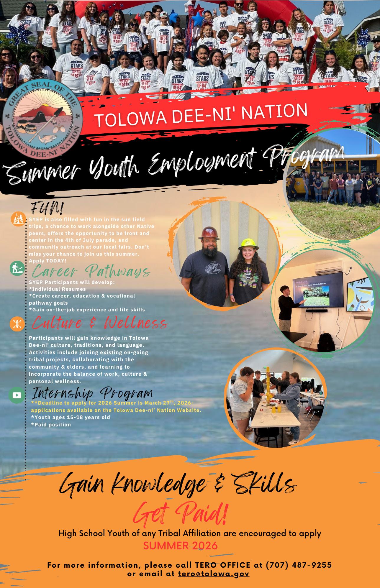 Tribal Employment Rights Officer, Brian Millett (707) 487-9255, ext. 1222, brian.millett@tolowa.gov
