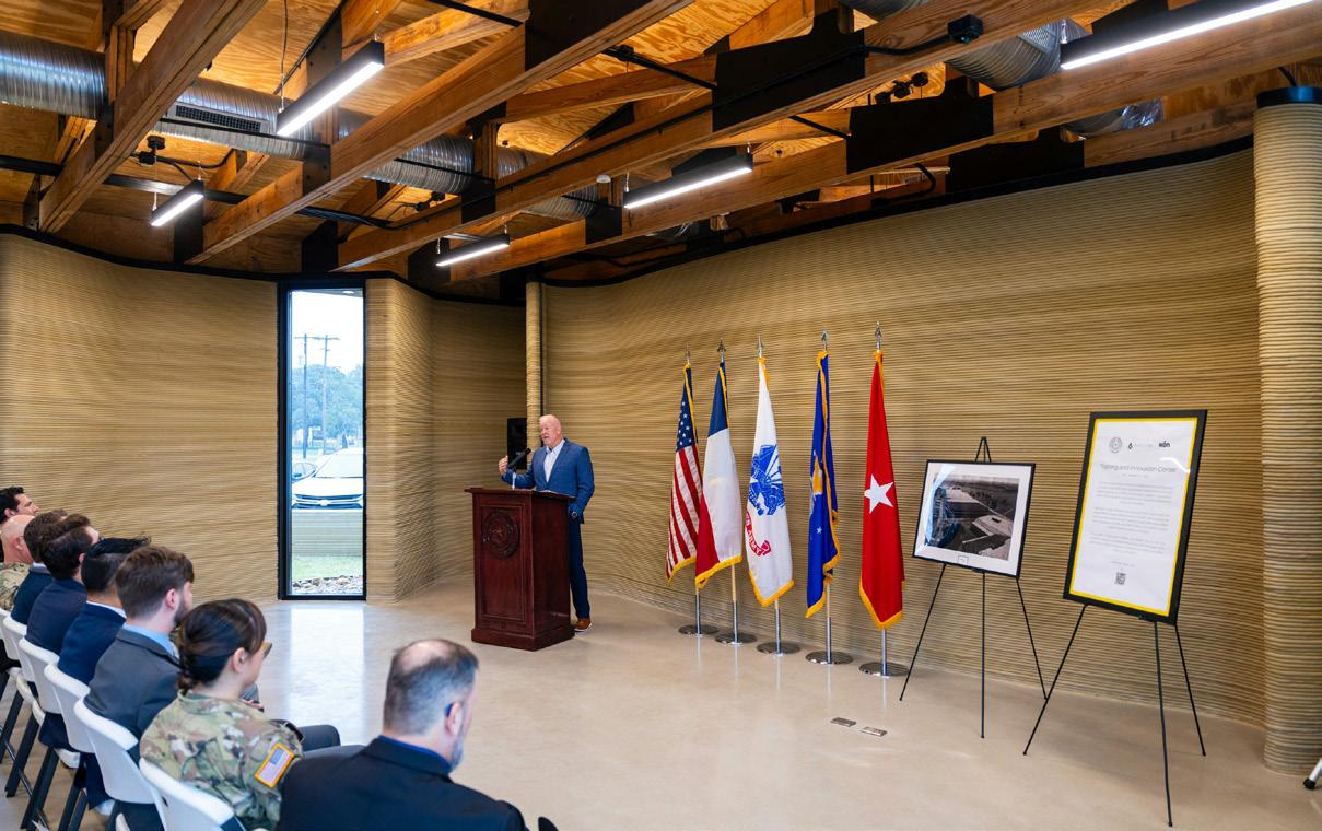 The Texas Military Department Training and Innovation Center at Camp Mabry in Austin, Texas is a 3D-printed administrative and training facility that replaces aging temporary structures with a permanent hub for training, collaboration, and research. The project is located within Camp Mabry, and the design is heabily influced by the existing early-20th-century military fabric and the rapidly changing urban environment of Austin, using 3D-printed concrete construction.