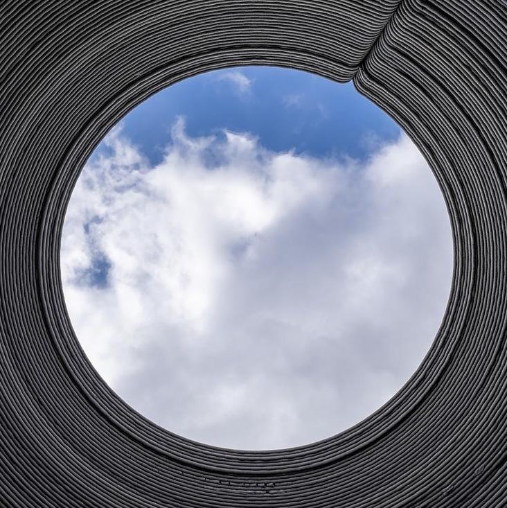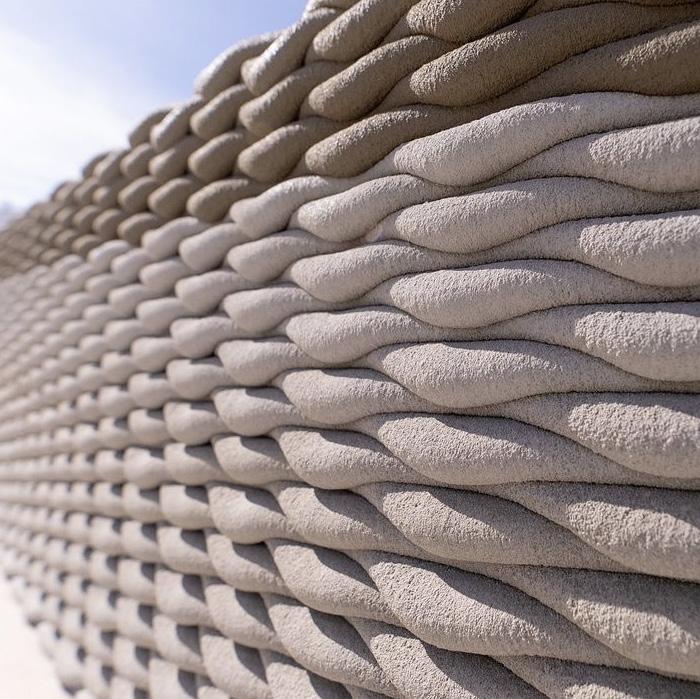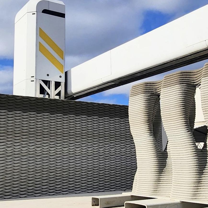 A key element is the chevron wall, a parametric printed pattern that references military rank insignia and establishes a strong visual identity for the project. This project is also significant as the first 3D-printed project to receive approval from a historic design comission, positioning it as a precedent for integrating emerging construction technologies into historically layered sites.