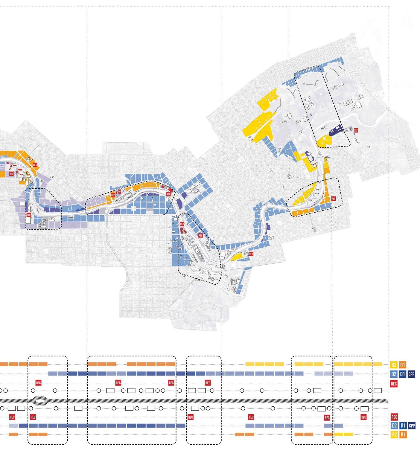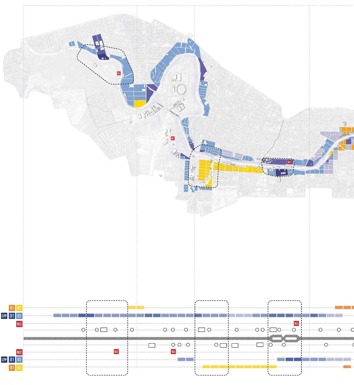 In Córdoba, Suquía River has a great potential; it crosses the city from West to East having a direct impact on a large part of the urban population (58% live less than one mile away from the water course). Under this position, we proceeded to identify the needs and characteristics of the different areas located on both sides of the river in order to define the possible activities and infrastructures of each sector. The Suquía River is a border in the heart of the city. Our goal is to regenerate that missing piece towards an integrated city of Córdoba.