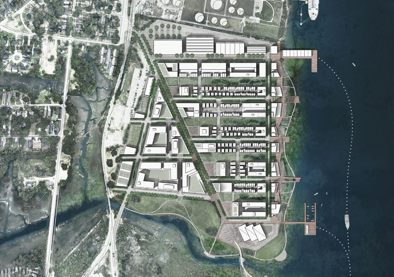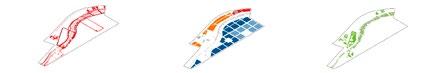 Flux & Transition understands the site’s potential to complete the Emerald Necklace by proposing a “Waterfront Bracelet” of continuous open spaces and public programs. The urban fabric is designed to have a gradual transition from South Boston, with a low residential density, and Seaport, with a rising density and mixed use configuration, gradually growing in density, diversity of programs, accessibility and ecological function of open spaces.