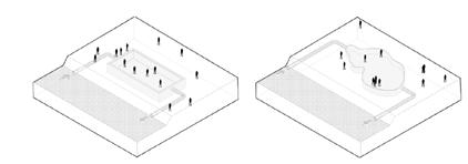 CAÑO ARROCITO PARQUE LOS FUNDADORES CENTRO COMERCIAL VIVA AVENIDA 40 AVENIDA40 CALLE AFECTACIONVIALV4 ANFITEATRO MIRADOR MARIPOSARIO UP5 AFECTACION VIAL CARRERA37 UP2 AGROURBANO UP1 SELVATICO DE MIRADOR TEATRINO LOWER PLAINS Ocoa River Almaviva Park RESTORE Ecological network 1 Rainforests Bio. Connectors Rural Streams Rivers Commercial Cultural Services Sports INTEGRATE Public space and institutions 2 SÍNTESIS Sector Public Space Vertical Connectors Urban Borders AlmaViva Park STRENGHTEN Mobility System 3 Regional Roads New Pedestrian and Bicycle Paths Urban Roads Bus Station 40 40 65 65 65 SITE ANALYSIS PLAN Section A Section B Palmetum Stream Stream Stream Membrane Parking Membrane Stream Stream Productive Soil Stream Membrane Urban Fabric Wetland Membrane Sports Rainforest Lowland Meadow Top View Integrate Restore Strenghten 2 1 3 Public space and Institutions Ecological Network Mobility system
