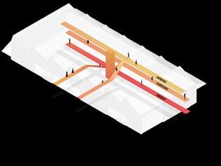 The proposal looks for a balance between heritage importance and identity of the old building and the incorporation of a new element in the interior, which is necessary to enable a new program ,encouraging innovation and collaborative work. The interior is divided in two long spaces, according to the original layout for train refurbishment. A compact block, both introspective and permeable, is located in one of this spaces, containing all the activities that require a greater level of control and acoustic, climatic, security and privacy protection.