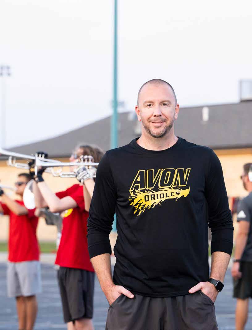 “My job there was to have one foot in the door with the athletics department and one foot in the door with the band, so I was the liaison between the two,” he says. Though he enjoyed his time there, he missed the competitive aspect of band. For years he had been friends with several people at Avon High School, with his pulse