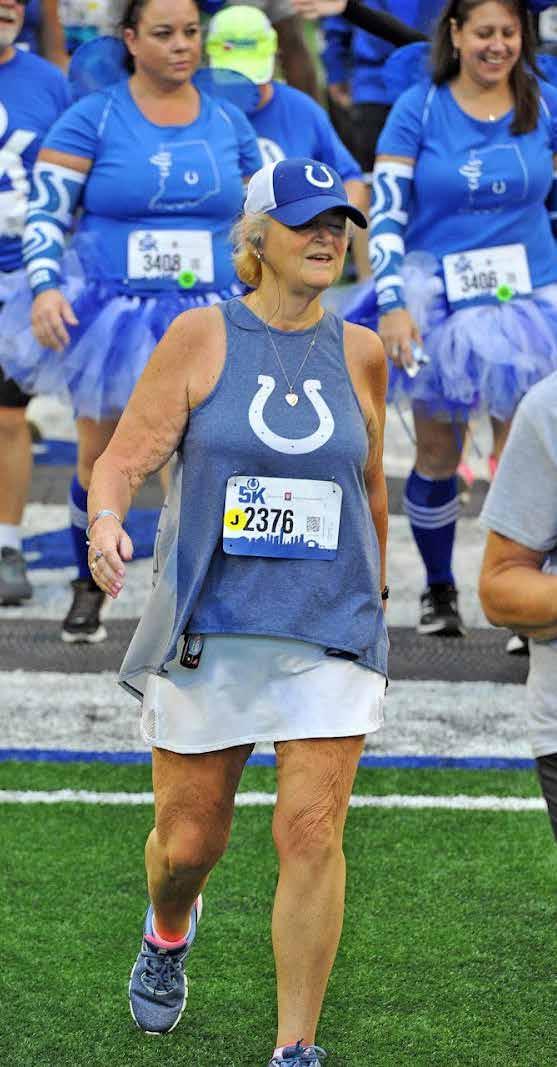 KEEP MOVING HENDRICKS COUNTY WOMAN NAMED 2023 INDY MINI-MARATHON AMBASSADOR Linda with Blue & fellow runner