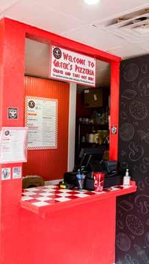 The newly opened pizzeria, formally the Pizza King location, was painted, decorated and remodeled by the hands-on owner, who used the trademark red, white and black colors of Greek’s Pizzeria.
