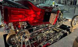 down the gold leaf and brushwork. Every chrome piece on the car was re-chromed, so the car gleams under the lights on the indoor show-car circuit. All the gold on the car is actual 24 karat.