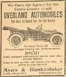 But that was not all Myers & Blankenbaker did at the funeral home; they also sold cars. They were the county agents for Overland Automobiles, and their 1914 ad even states, “come in and see this car,” which suggests that at least one of the cars was actually at the funeral home. In 1915, even though
