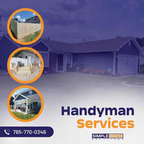 TownePost.com / AUGUST 2023 / KOKOMO MAGAZINE / 5 C&C Cleaning Services 765-862-0166 √ Handyman √ Flooring √ Fencing √ Home Remodels √ Appliance Installation √ TV Mounting √ Painting √ Roof Repair √ Custom Decks √ Drywall √ Bath & Kitchen Remodels