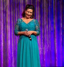“I parlayed that into joining a country band at age 12. I sang and played the piano every weekend for two years. Then, at age 14, I started singing gospel. In high school, I did musical theatre and two teachers really inspired me—my drama musical teacher, Jane Rose, and my choral director, Jean Batts,” she says.