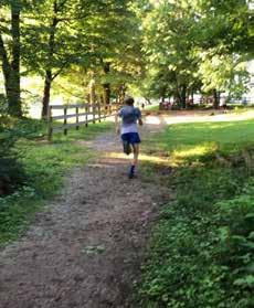 The race begins near the 1792 head of the homestead, down to the Sunrise Trail. At the one-mile mark, runners dip into the woods on the Waterfall Trail and then onto
