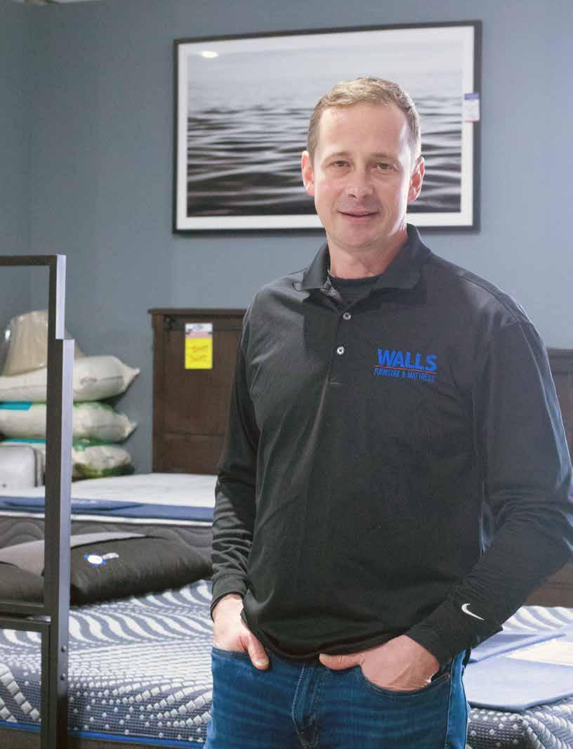 Robbins stands behind the furniture and mattresses he sells and wants to make sure customers are happy with what they buy. He will try to fix any issues or problems and has been known to visit a customer’s home to replace an item under warranty. His hands-on ownership style translates into repeat business for Walls Furniture and customers who share their positive experiences with friends and family.