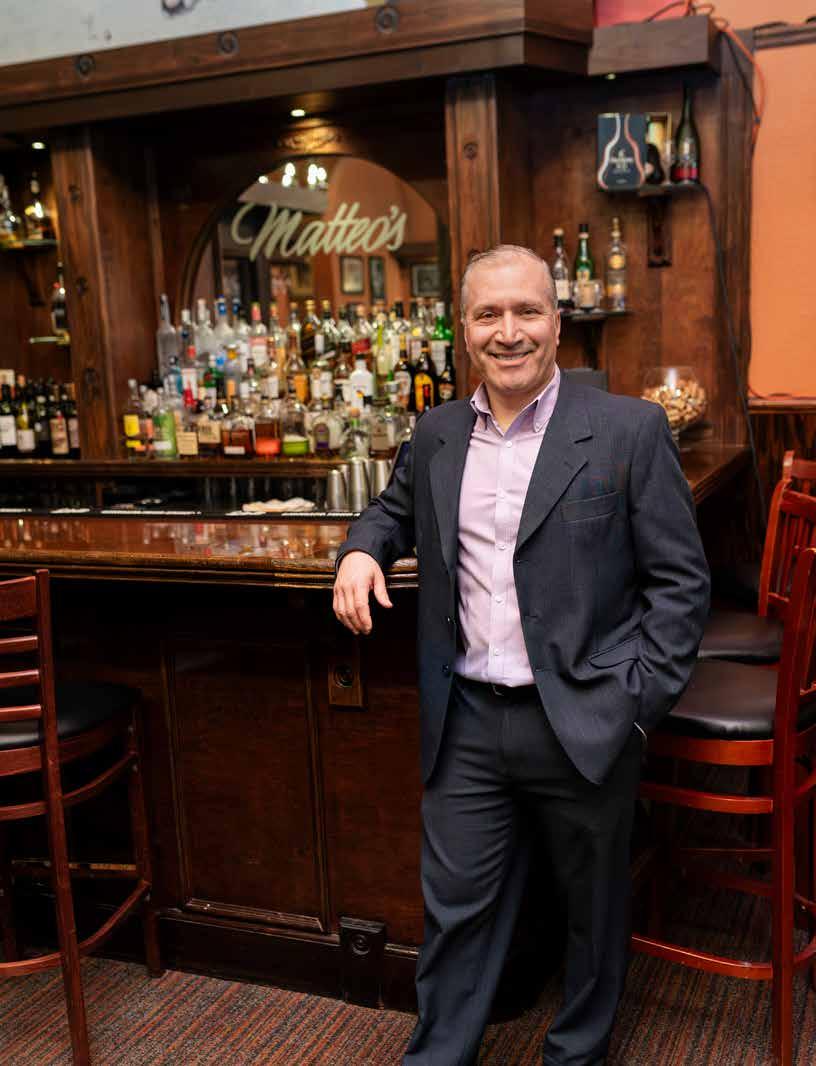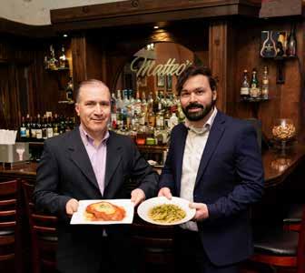 Locals return for the experience created by owner Joelcir Antunes. Walking into the restaurant, guests are welcomed by moody lighting and walls filled with blackand-white vintage photographs of old Hollywood stars and Italian memorabilia, reminiscent of New York Italian restaurant décor. Guests are greeted by friendly staff, most of whom have worked at Matteo’s for years, and regulars enjoy seeing familiar faces.