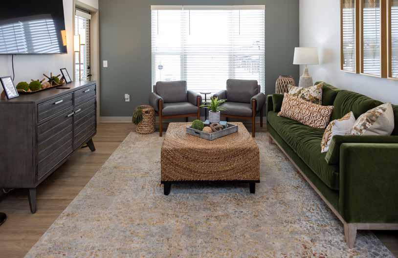 plans to meet the needs and lifestyles of residents. Whether choosing a cottage home or an apartment, residents can expect functional, stylish living paired with modern fixtures and features. The cottages are ideal for those looking to downsize and feature two-bedroom, two-bathroom layouts with attached garages. The community building includes one- and two-bedroom apartments with a variety of floor plans, including openconcept options.