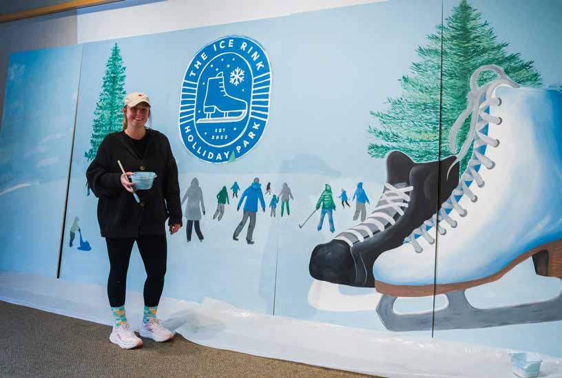 “We have created a very cozy, welcoming space for families. We have six fire pits and a large commons area, ideal for gathering. Our space also includes a warming hut, fashioned from a converted shipping container with a viewing space where parents can watch their children skate while relaxing in a warm space,” says Chris Clyne, manager of the Holliday Park Ice Rink. Spectators can also purchase food and drinks from MashCraft on-site.