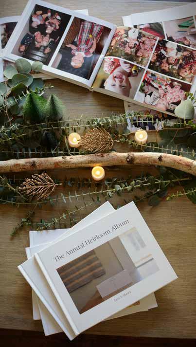 “Organizing yourself prior to the holidays lightens the mental load during the holidays. Buying yourself The Annual Heirloom Album this December means you could have a stack of your own annual albums ready to display and share next December,” she says.