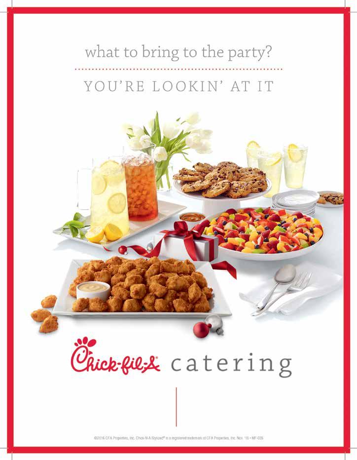 what to bring to the party? YOU’RE LOOKIN’ AT IT (317) 271-7760 10791 E. US Hwy 36, Avon, IN 46123 www.Chick-fil-A.com/Avon catering ©2016 CFA Properties, Inc. Chick-fil-A Stylized® is a registered trademark of CFA Properties, Inc. Nov. ‘16 • MF-035