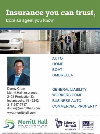 TownePost.com / SEPTEMBER 2023 / PLAINFIELD MAGAZINE / 27 Business Coverage Personal Coverage Cyber Liability Professional Liability Management Liability Danny Crum 317-247-7737 dcrum@merritthall.com merritthallins.com GROW YOUR FUTURE WITH CONFIDENCE 35 YEARS IN BUSINESS OFFEREXPIRES:10-31-23