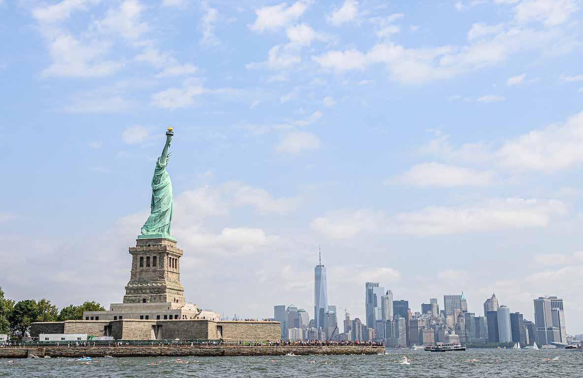 The athletes then swim from the Statue of Liberty to Ellis Island, where they do another 100 honor pushups and 22 pull-ups. From there, they swim across the Hudson River to Battery Park in Manhattan. They pick up an American