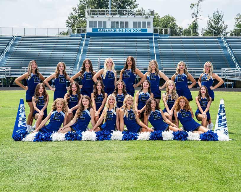 have a long tradition of thrilling and entertaining audiences with tumbling skills, complex stunts and engaging choreography. This year, Eastern High School’s competitive cheer team has taken the sport to its next level. Currently celebrating a successful season full of accomplishments, the team members know all the hard work and long hours of practicing their routine full of complex stunts was well worth it.